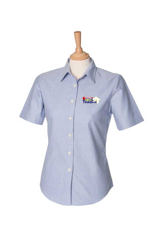 Ladies Short Sleeve Oxford Shirt Blue with embroidered logo quantity